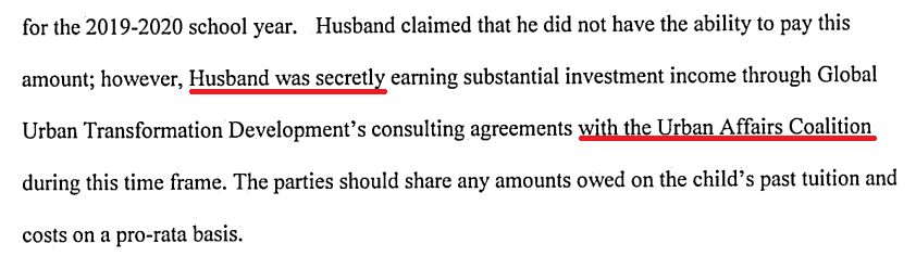 “SECRETLY” earning substantial income in consulting agreements with Urban Affairs Coalition”.