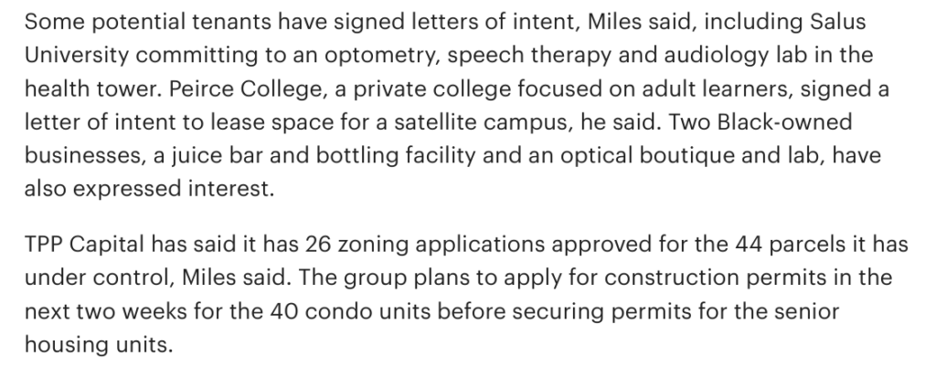 The partnership is capitalizing on the parcel assembly work conducted by key principals of senior management over the last five years. TPP currently has site control and a pipeline of over Forty-four (44) plus ground-up new construction projects within these “federal certified qualified opportunity zones” which addresses multiple housing and retail needs while driving positive social, environmental and economic change.